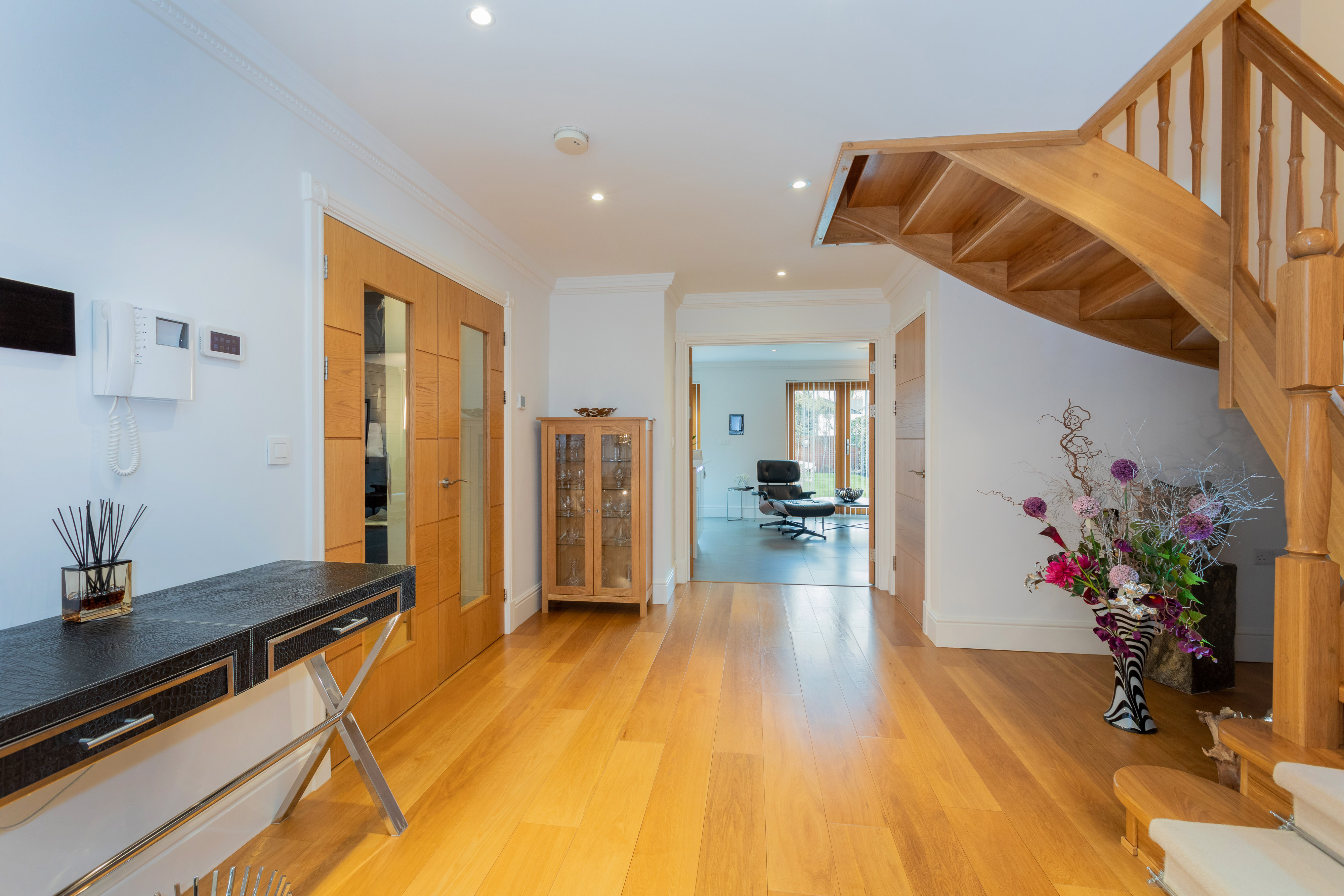 In addition to its impressive eco-credentials, the property boasts five bedrooms and five Villeroy and Boch bathrooms, an Italian designed kitchen, prime engineered oak ground-level flooring, an intelligent lighting system, double garage, an image security system and automated gates on entry.